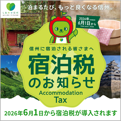 2026年6月1日のご宿泊より、長野県において宿泊税が導入されることとなりました。